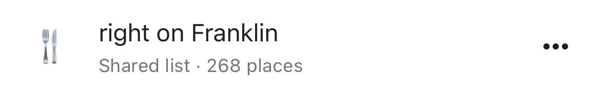 In the meantime, I am so excited to share the right on Franklin google map—an idea that has been rattling around in my head since before I started up this newsletter.
