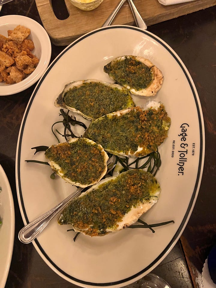 Gage & Tollner - It is so bright in there and I love it. If it weren’t for a birthday party, it would have to be for a team outing. I can’t quite explain it, but this dining room was built for slightly celebratory, slightly mandated, slightly formal, slightly booze-heavy dinners.