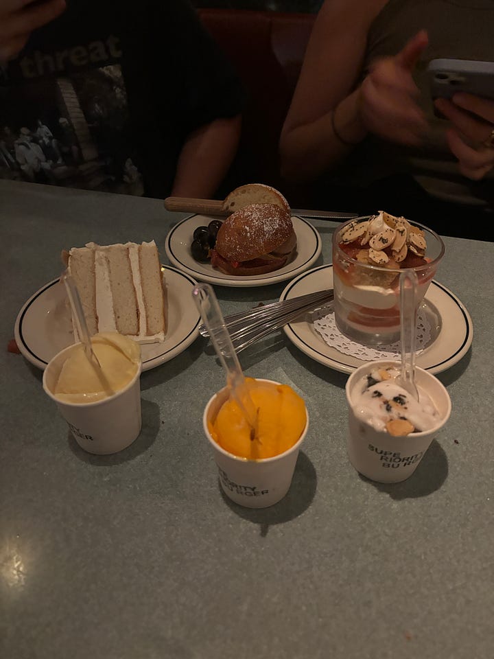 L’Artusi - Slightly harder to book, but will impress your higher-ups. Frankly, the vibes are so weird inside (anti-date spot, IMO) but lends itself well to chatting about future projects and hinting at a raise. Stay for the olive oil cake.